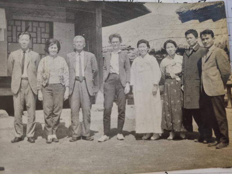 | 1964년 석당고택에서. (왼쪽부터) 석총 이상구, 필리핀 미술사학자 코라 여사, 석당 최남주, 미국인 한국학자 헬링톤 여사, 최귀생 여사(석총 이상구 변호사 부인), 이원임 여사(석당 최남주 부인), 최완수(미술사학자, 당시 경주박물관 근무), 최정채(석당의 2남). |