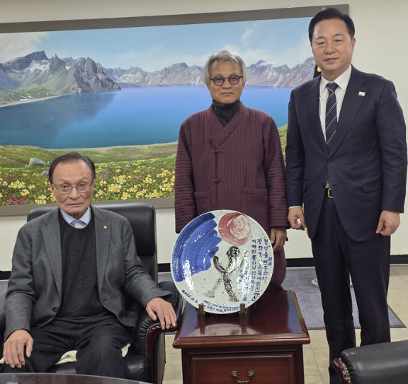 한달 전 평통수석부의장실에서 김두관 전 경남도지사와 찾아 뵈올 때 따사롭고 반갑게 맞아주신 모습이 눈에 생생하옵니다. 필자가 특별히 제작한 “한국의평화통일과 민주화운동에 평생을 헌신하신 이해찬총리님의 평통수석부의장취임을 축하합니다”는 글귀가 씌여진 분청사기접시작품을 선물로 드리니 매우 감격하셨습니다.