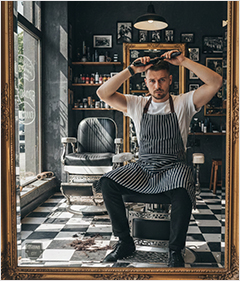 미용실에 들어와 자리에 앉았습니다.