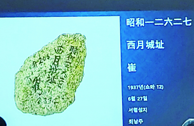 | 1937년 최남주가 서월성지구에서 발견한 비석의 뒷면에 친필로 기록한 발견 경위. 국립경주박물관 수장고.(사진제공 국립경주문화재연구소) |