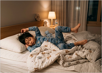 이렇게 뒤척임에도 어른들은 침대에서